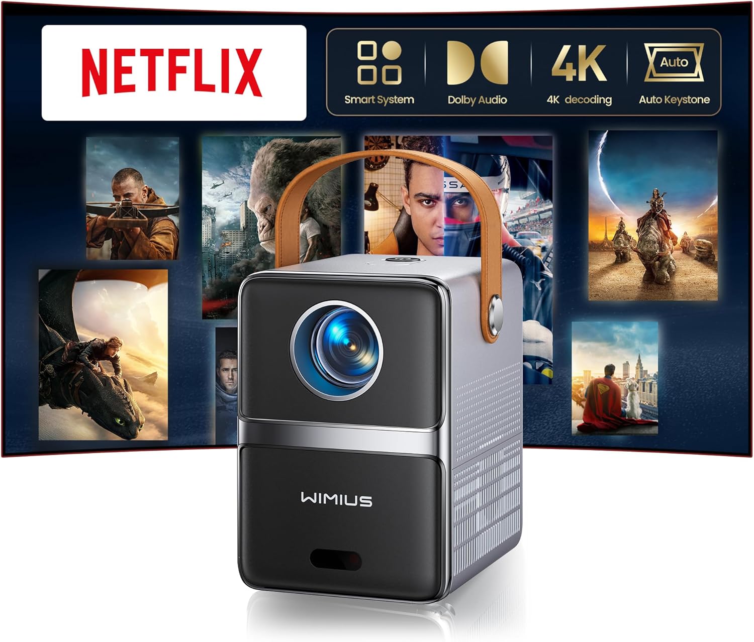 Mini 4K Projector【Netflix Officially/Dolby Audio/Short Throw】28000Lumen FHD 1080P Smart Portable Projector, TOF 1s Focus, WiFi6 Bluetooth 50% Zoom Home Cinema Projectors for Bedroom,Outdoor,Kid Gifts